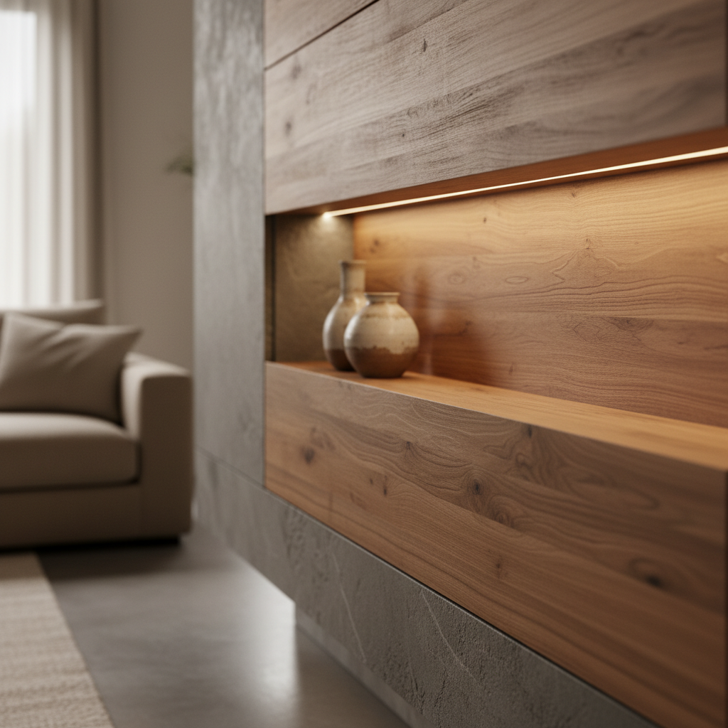 Today’s trend favors clean lines, floor‑to‑ceiling built‑ins, and integrated storage that eliminates bulky furniture. At Stone Creek, we design media walls that feel like part of the architecture—floating shelves, recessed niches, and seamless cabinetry that keep the room open and uncluttered.