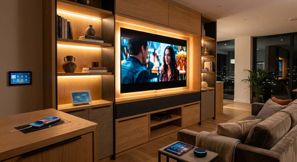 - Hidden LED strips and accent lighting that sync with your entertainment or circadian‑lighting routines.